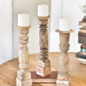 - Plaats stenen kandelaars op een houten plank voor een natuurlijke en harmonieuze look.