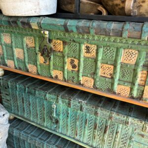 Indian vintage kisten worden met de hand vervaardigd van stevige materialen zoals massief hout. Elke kist is uniek, met een eigen patina en gebruikssporen die hun geschiedenis vertellen. Deze kisten worden vaak hergebruikt uit traditionele Indiase huishoudens, wat bijdraagt aan hun nostalgische charme en duurzame karakter.