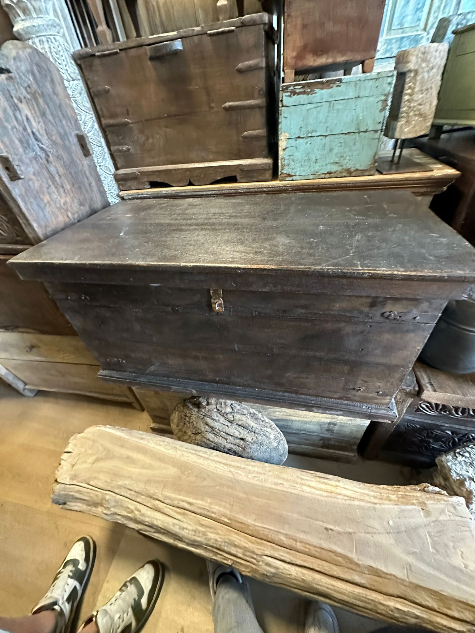 Een indrukwekkende, met de hand gemaakte opbergkist met authentieke details en een doorleefde patina.