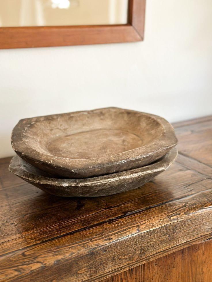 De houten kraal heeft een robuuste en verweerde uitstraling die perfect past bij een vintage of industrieel interieur. De donkere tint en ruwe afwerking geven het schaal een doorleefd en karaktervol uiterlijk.