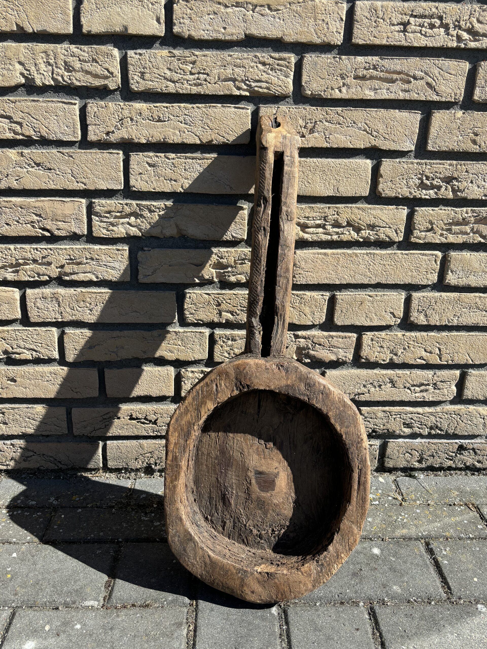 Een zeldzaam en authentiek stuk uit de traditionele Indiase olieproductie.