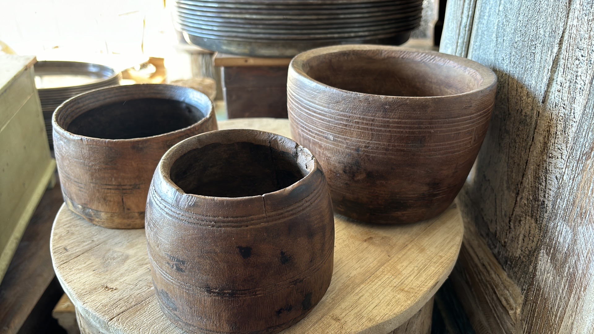 Een collectie unieke Indiase potten in diverse stijlen en maten.