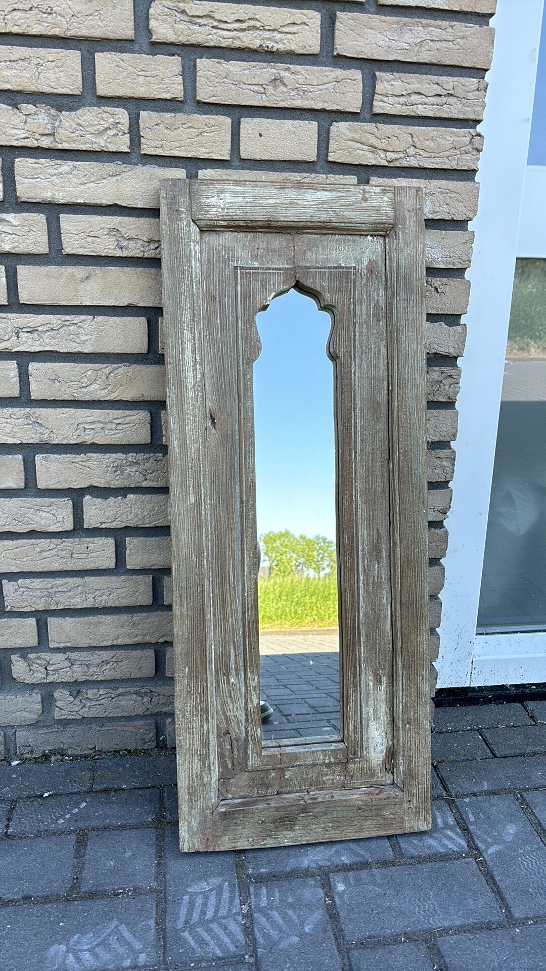 Sfeervolle handgemaakte spiegel geïnspireerd op traditionele Indiase tempelarchitectuur.